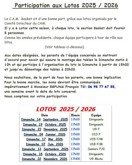 Vie du clubActualite Le club Entrainements Loto du CAM Partenaires Plannings Photos Equipements Boutique Arbitrage Super Tombola 55 ans DocumentsLiens internetLiens InternetLes EquipesSeniors filles Seniors masculins Cadettes U18F Cadets U18M Minimes masc. U15M Minimes Filles U15F Benjamines U13F Mini-poussines U9F Baby U7Les matchsMatch du weekend Resultats Resume du weekend ClassementsMultimediasArchives Contact Forum | Loto du CAM |